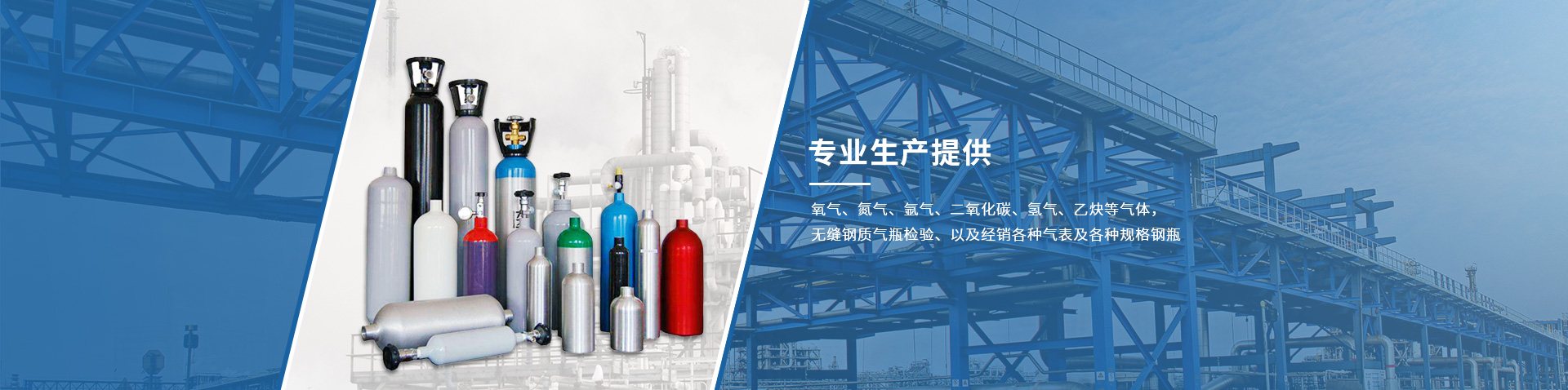 公司主要專業生產提供以下產品:氧氣、氮氣、氬氣、二氧化碳、氦氣、氫氣、乙炔氣等工業氣體及其標準氣體、高純氣體;氧氣、氮氣氬氣、二氧化碳、液體氣體、應用氧氣、各種混合氣體食品級添加氣體等。無縫鋼質氣瓶檢驗,低溫貯槽、容器保溫檢修,低溫液體氣化器制作,安裝和提供集中供氣系列,并負責技術服務。經銷各種氣表及各種規格鋼瓶。